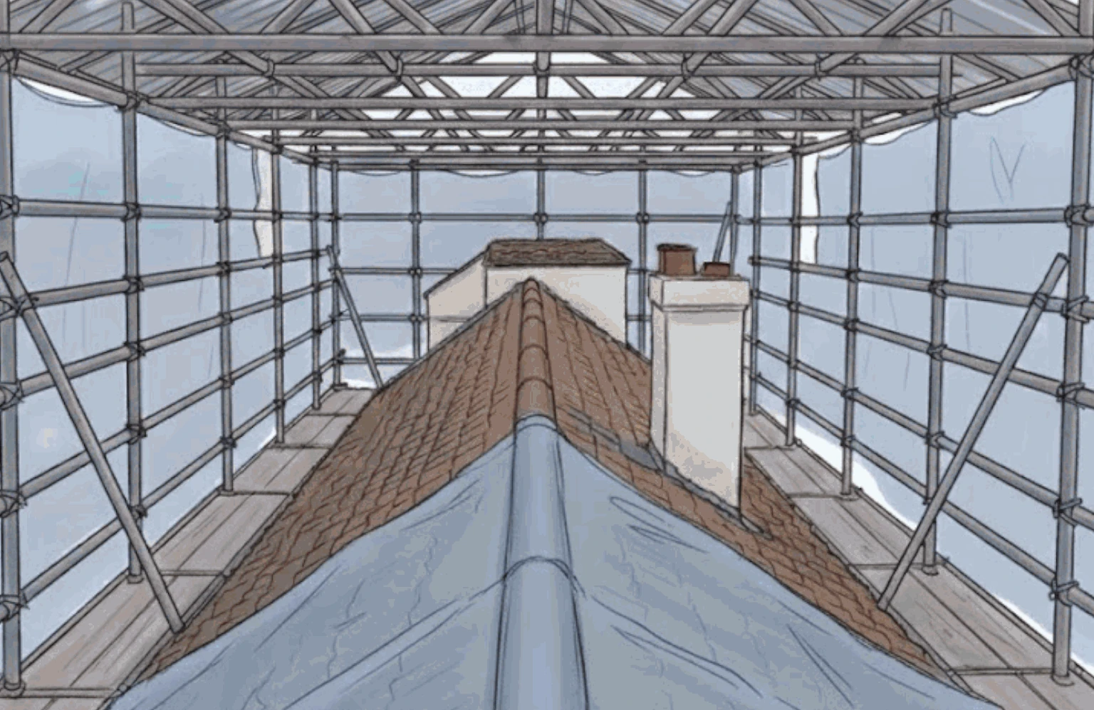Weather-tight coverage systems to protect work areas during repairs, refurbishments, and commercial projects.